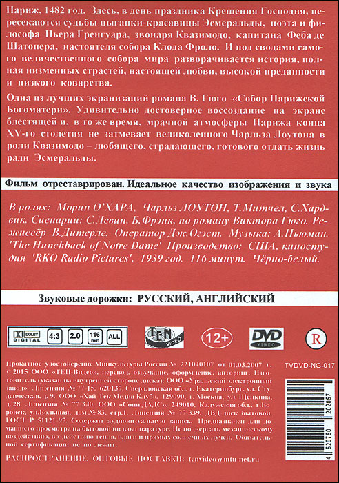 - Комментарий: "Собор Парижской Богоматери", экранизировали и ставили на сцене десятки раз, но эта картина 1939 года стала одной из лучших экранизаций воплотившей в себе весь масштаб и величие оригинала Гюго.