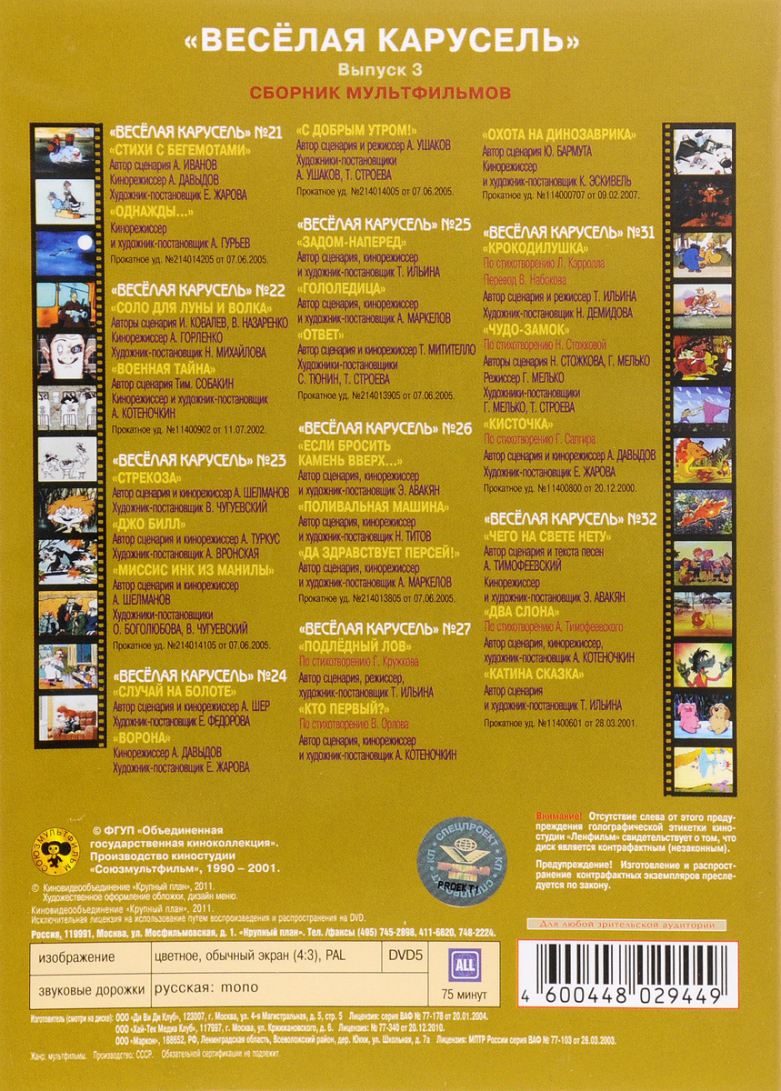 Золотая детская коллекция: Весёлая карусель (сборник мультфильмов) (3 DVD)