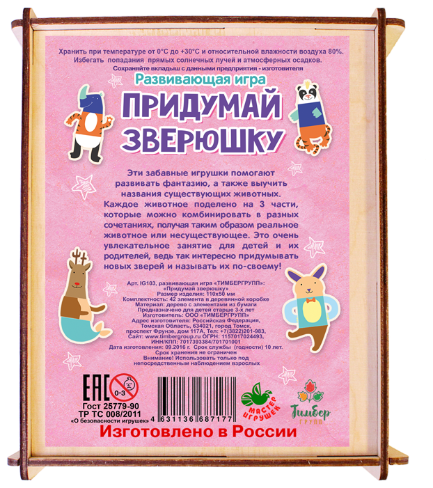 - Дополнительная информация размер 1 зверушки: 11 х 5 см; размер 1 детали: 3 х 6 см