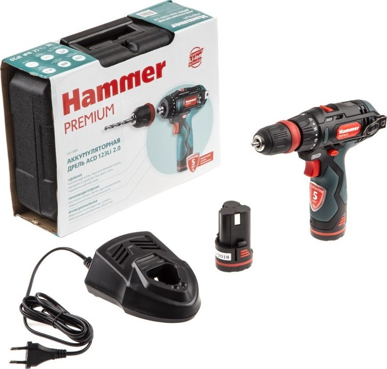 Аккумуляторная дрель Hammer ACD123Li 2.0 PREMIUM 12В 0-350/0-1300об/мин, 36Нм, 2х2mAh, кейс