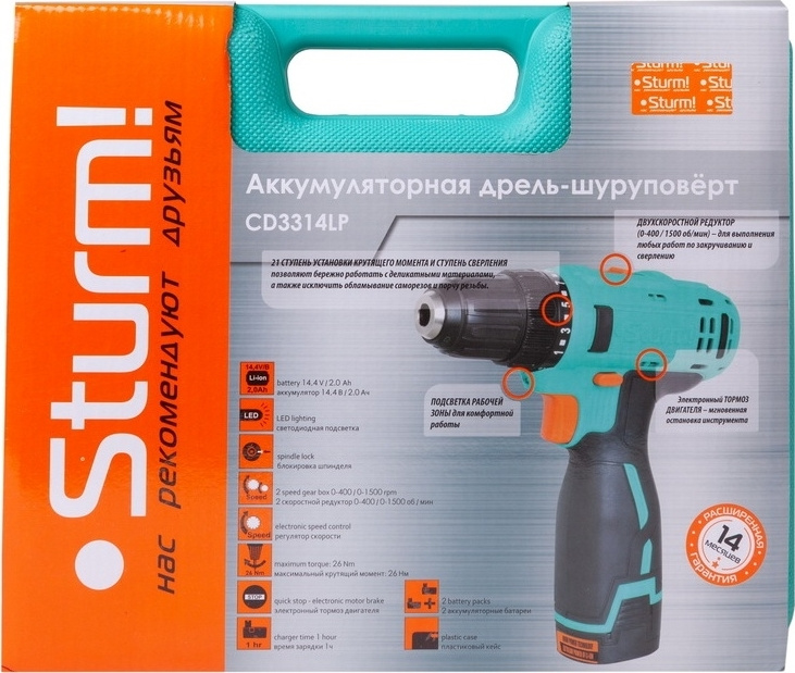 Дрель-шуруповерт аккумуляторная Sturm! CD3314LP