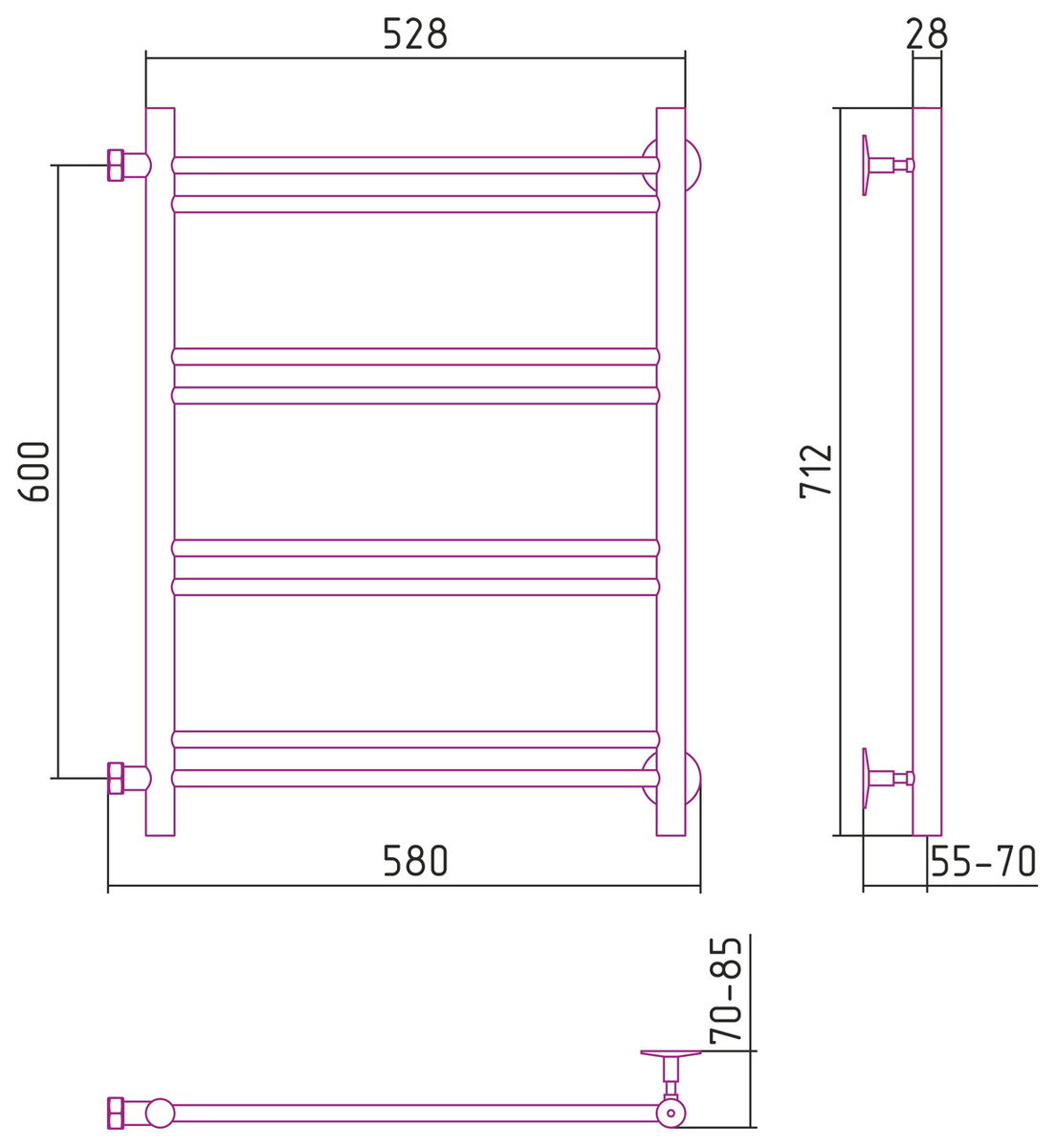 Полотенцесушитель водяной СТИЛЬЕ "Версия-Б1" 600х500 (2+2+2+2) П 16 00611-6050