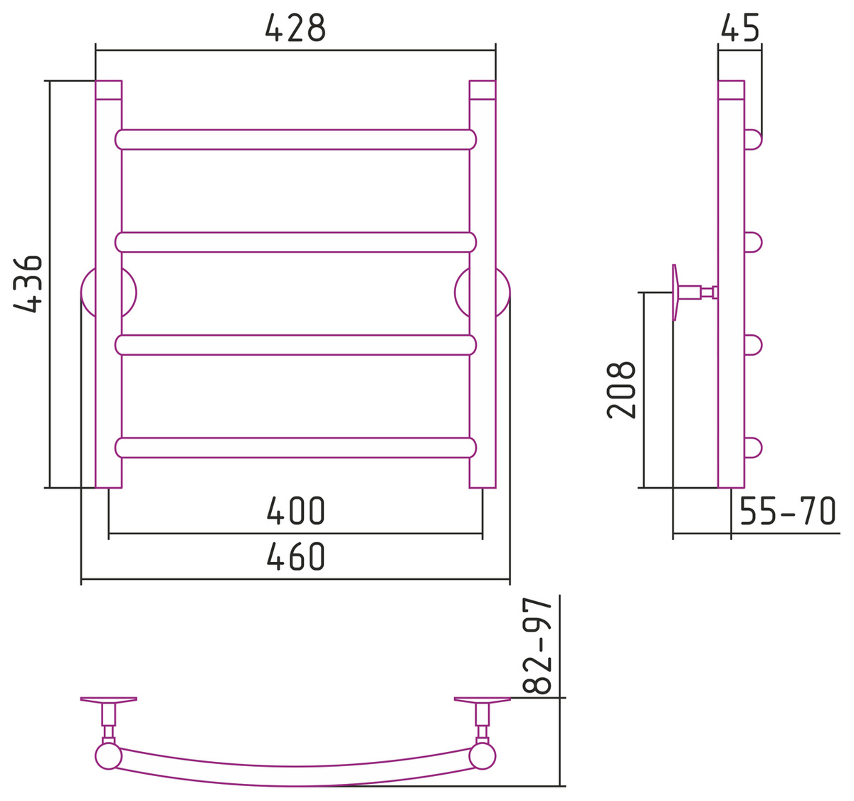 - Комплектация -Полотенцесушитель водяной Стилье Универсал-50 500х400; -Два телескопических кронштейна; -Два клапана "Маевского"; -Два декоративных колпачка для клапанов;