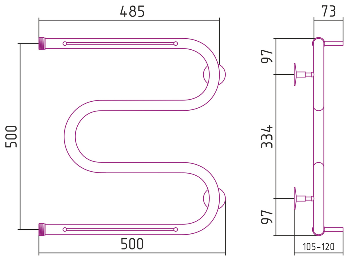 Полотенцесушитель водяной "СТИЛЬЕ" М-обр. 2П 500х500 резьба-cгон 1" 00014-5050