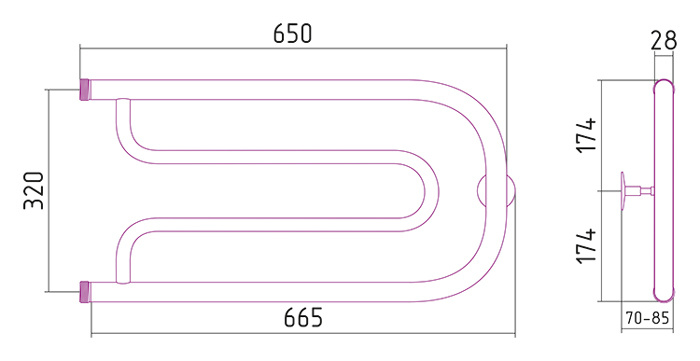 Полотенцесушитель водяной "СТИЛЬЕ" ДУЭТ 320х650 резьба-cгон 1" 00010-3265