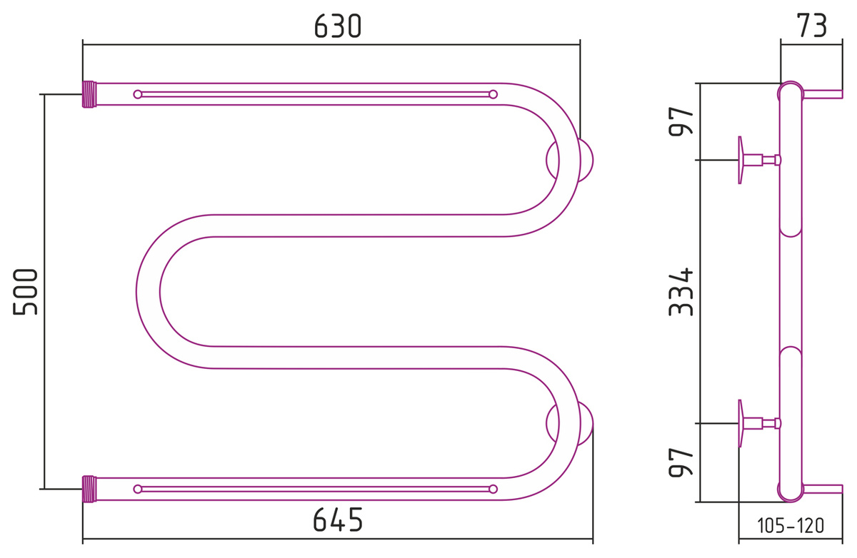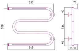 Полотенцесушитель водяной Стилье М-обр. 2П 500х650 резьба-cгон 1" 00014-5065