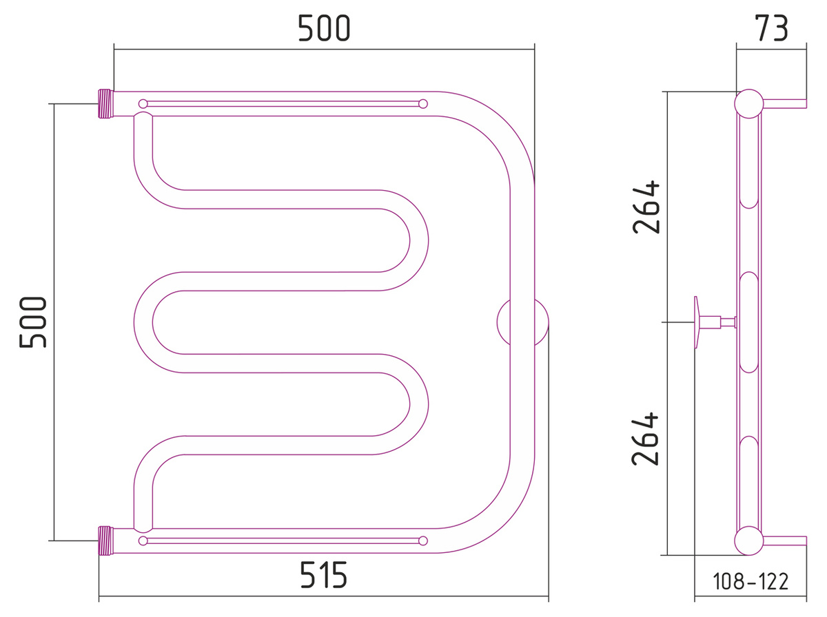 Полотенцесушитель водяной "СТИЛЬЕ" ТАНДЕМ 2П 500х500 резьба-cгон 1" 00016-5050