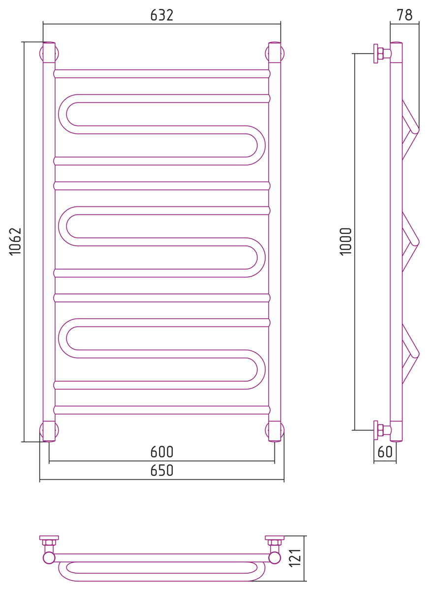 Полотенцесушитель водяной Сунержа Элегия+ 1000х600, Золото с защитой 03-0205-1060