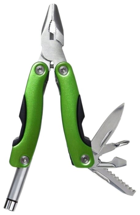 - Инструменты (функции) острогубцы кусачки нож нож с зазубренным лезвием светодиодный фонарик крестовая отвертка плоская отвертка открывалка для бутылок