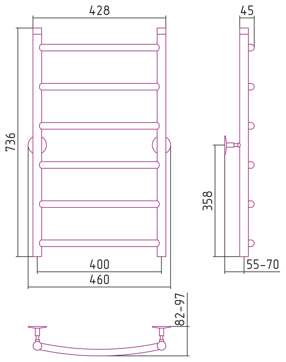 Полотенцесушитель водяной Стилье Универсал-50 800х400, 00650-8040