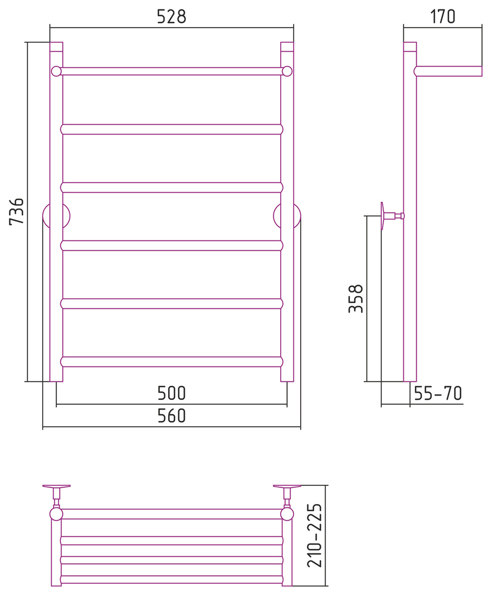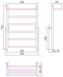 Полотенцесушитель водяной СТИЛЬЕ "Универсал-54" 800х500 (Полка + 5) П 21 00654-8050