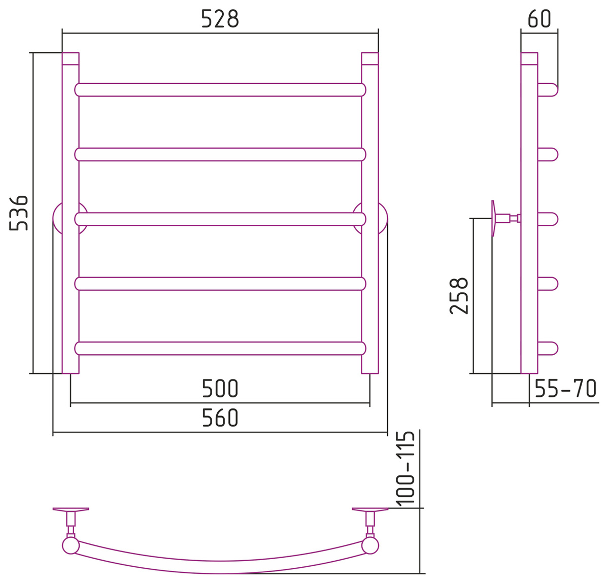 Полотенцесушитель водяной Стилье Универсал-50 600х500, 00650-6050