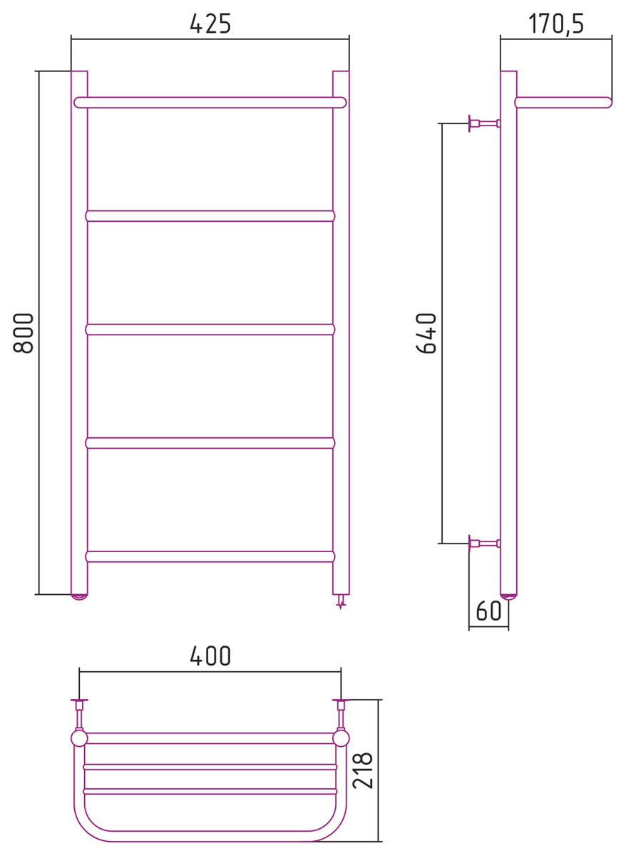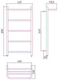 Полотенцесушитель электрический СТИЛЬЕ "Формат 30 П" 800х400 (Полка + 4) П16 (63.6 Вт) 00530-8040