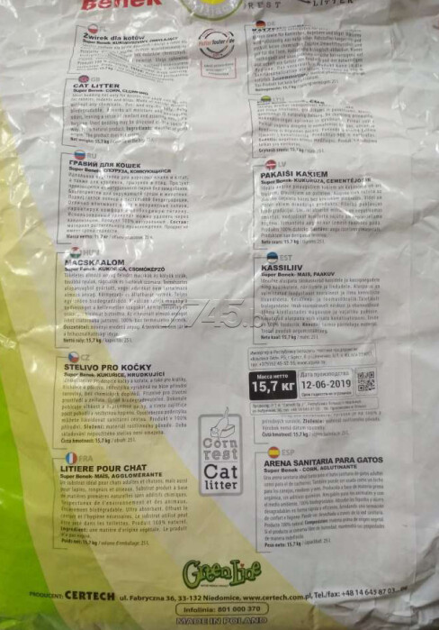Наполнитель для туалета растительный комкующийся SUPER BENEK Corn Cat кукурузный 7 л, 4,4 кг идеально впитывает влагу и запахи, обеспечивает комфорт и необходимую гигиену. Изготовлен из натурального сырья без химических добавок. Безопасен для окружающей среды и животных. Можно утилизировать в канализацию небольшими порциями.