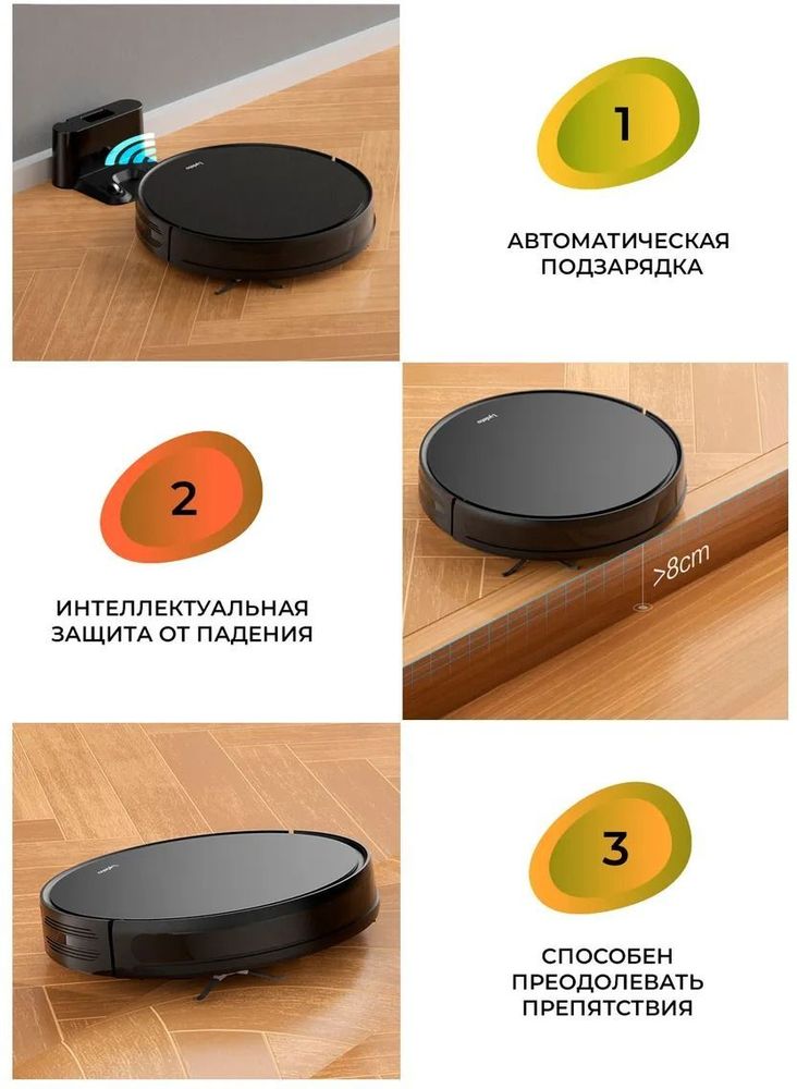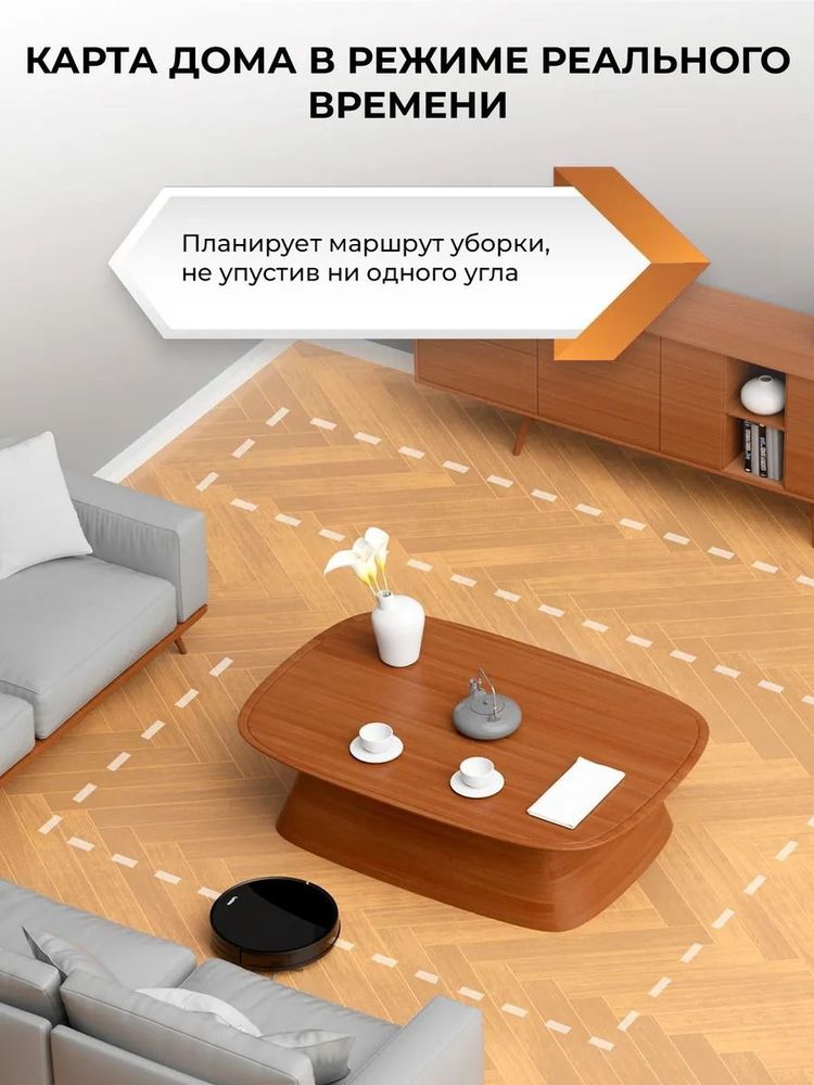 Робот-пылесос для уборки пола, уборка: сухая, влажная, мощность 28 Вт, пылесборник 0.3 л, кнопки, мобильное приложение, площадь уборки 150 м2, время уборки 120 мин, виртуальная стена, автоматический возврат на базу.