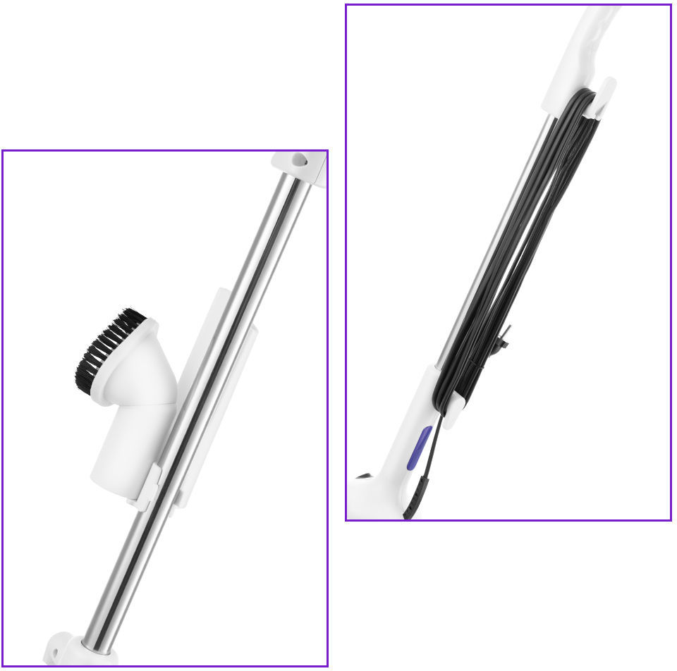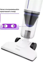 Вертикальный, сухая уборка, питание от аккумулятора, потребляемая мощность 600 Вт, пылесборник контейнер, уровень шума 80 дБ, цельная трубка, материал металл, вертикальная парковка, вес 1.8 кг.