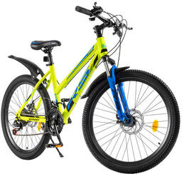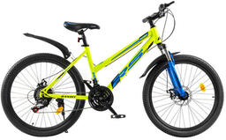 Горный, кросс-кантри, подростковый, с амортизационной вилкой, материал рамы - сплав алюминия, колеса - 24 , трансмиссия 21 скор, Тормоза: передний - дисковый, задний - дисковый, вес 17 кг.