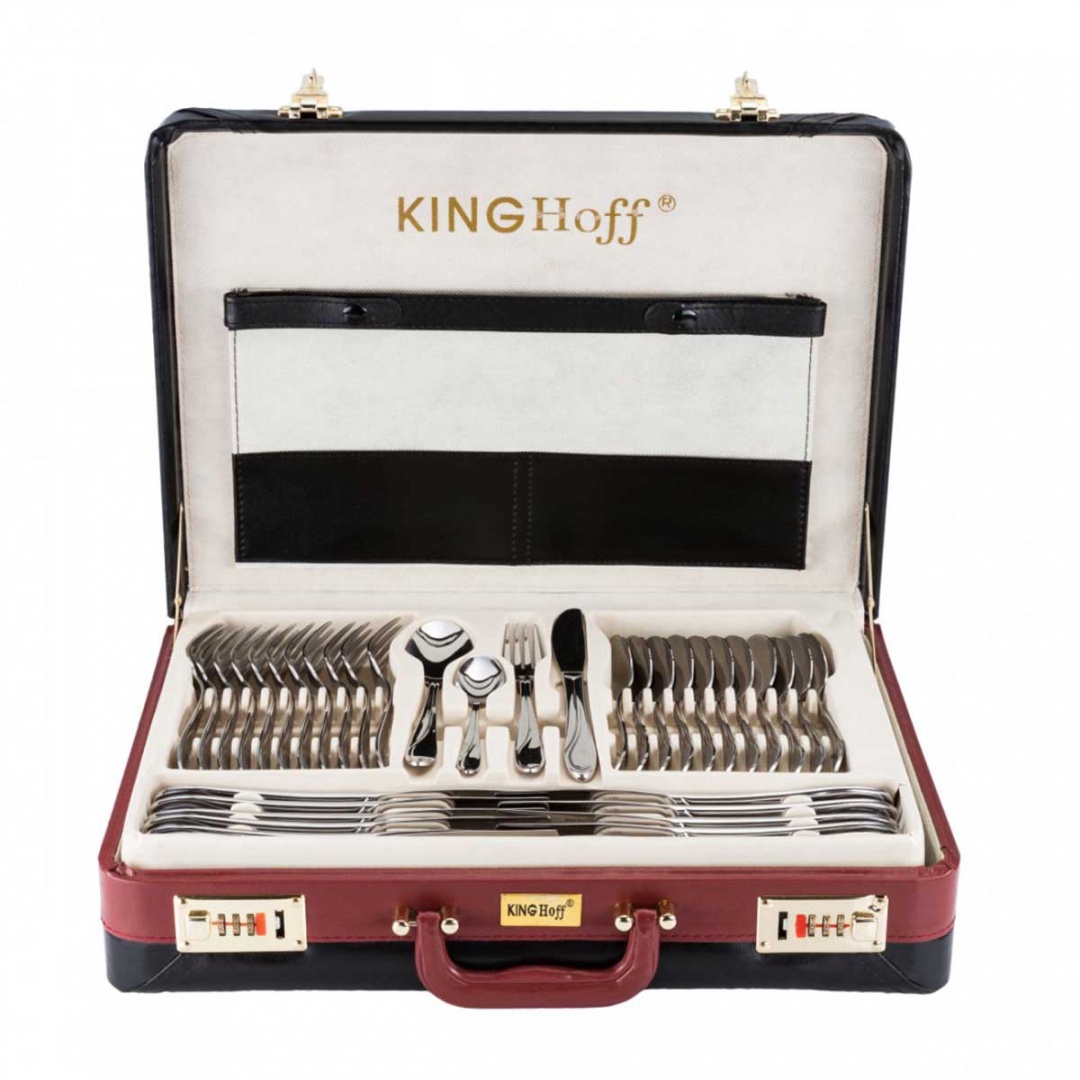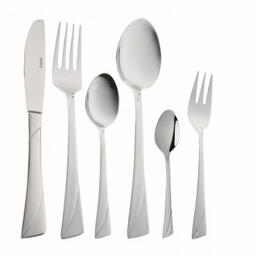 - Komplekte 12 stalo peilių, 12 stalo šakučių, 12 stalo šaukštų, 12 arbatinių šaukštelių, 12 pyrago šakučių, 12 kavos šaukštų, 2 mėsos šakutės, cukraus šaukštas, grietinėlės šaukštas, salotų šaukštas, salotų šakutė, sriubos šaukštas, padažo šaukštas, torto mentelė, cukraus žnyplės