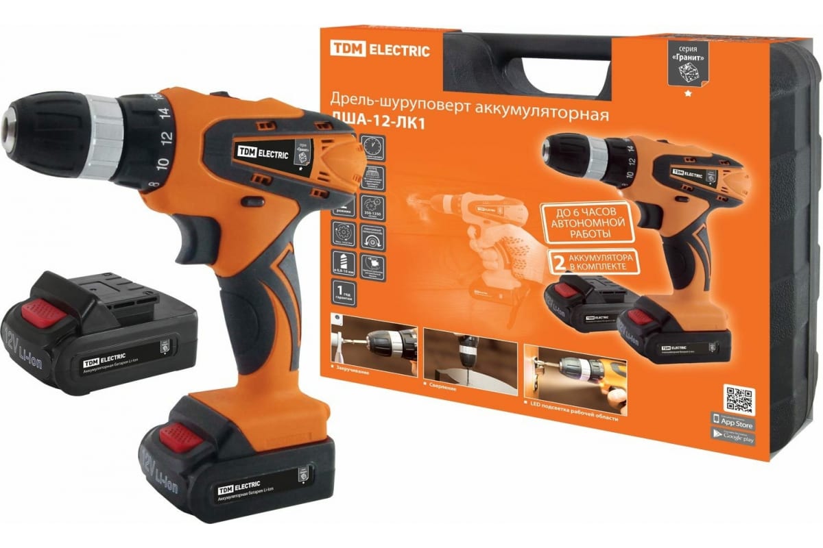 Аккумуляторная дрель-шуруповерт TDM ДША-12-ЛК1 Гранит SQ1030-0202 – универсальное устройство для закручивания/откручивания шурупов, саморезов, винтов и других видов крепежных изделий, а также сверления отверстий в материалах во время проведения строительных, отделочных, столярно-слесарных работ.