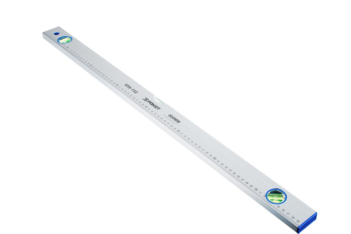 Уровень РОКОТ строительный 800 мм 659-152 определяет горизонталь и вертикаль. Можно настроить положение третьего глазка для работы с нужным углом.