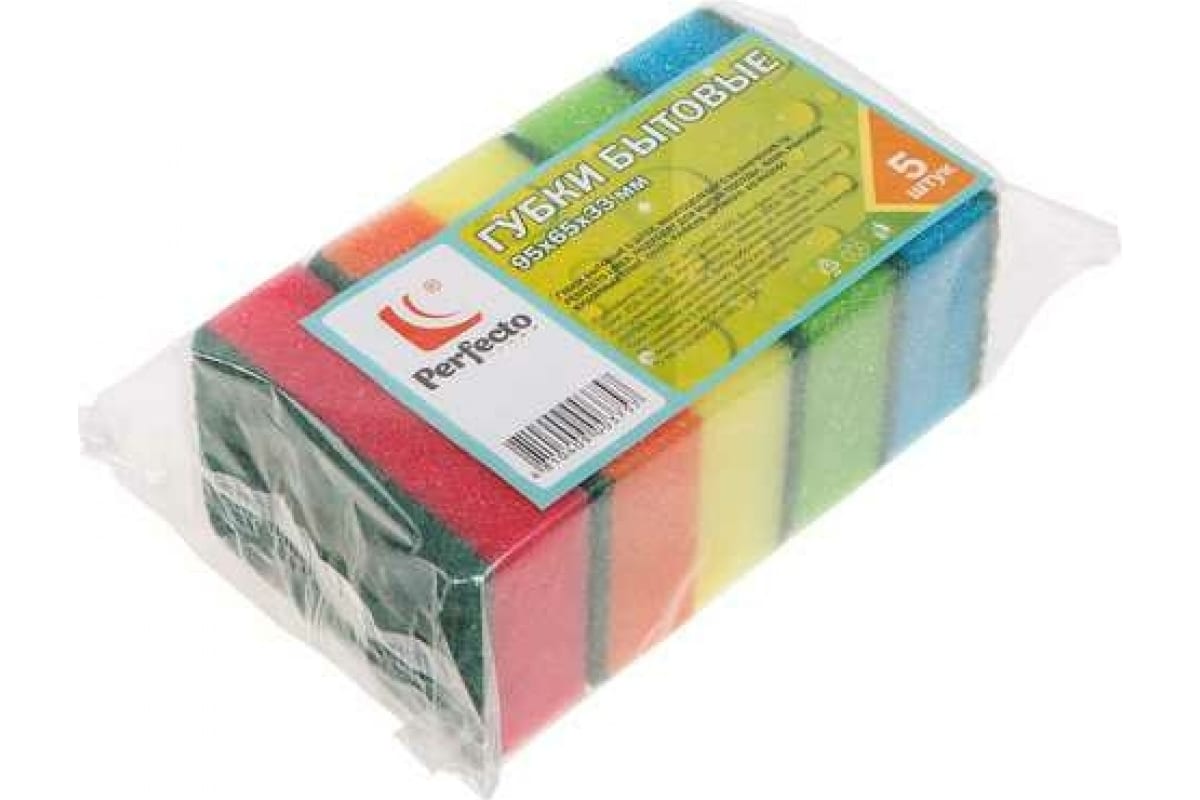 Бытовые губки PERFECTO LINEA 5 штук 45-950050 многоцелевого назначения, подходят для мытья посуды, ванн, раковин, кухонных плит, окон, кафеля.