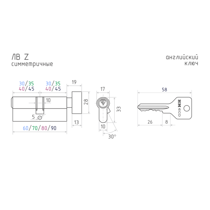 Цилиндр для межкомнатных и входных дверей. Материал ЦАМ (сплав цинка, алюминия и меди). В комплекте 5 стальных английских ключей. 5 пинов. Длину цилиндра подбирайте исходя из толщины двери, с небольшим запасом под накладку. Гарантия на работу цилиндра 1 год.