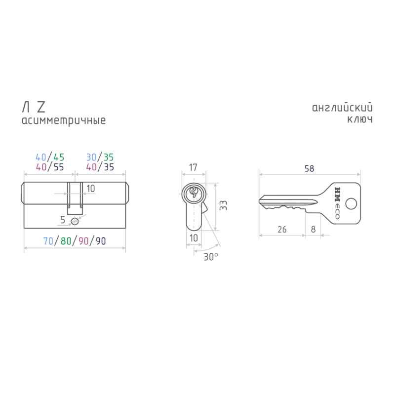 Цилиндр для межкомнатных и входных дверей. Материал ЦАМ (сплав цинка, алюминия и меди). В комплекте 5 стальных английских ключей. 5 пинов. Обратите внимание - цилиндр асимметричный, то есть имеет разное соотношение сторон по длине относительно центра. Длину цилиндра подбирайте исходя из толщины двери, с небольшим запасом под накладку. Гарантия на работу цилиндра 1 год.