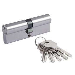 Цилиндр для межкомнатных и входных дверей. Материал ЦАМ (сплав цинка, алюминия и меди). В комплекте 5 стальных английских ключей. 5 пинов. Длину цилиндра подбирайте исходя из толщины двери, с небольшим запасом под накладку. Гарантия на работу цилиндра 1 год.