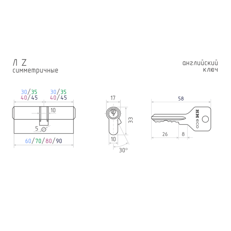 Цилиндр для межкомнатных и входных дверей. Материал ЦАМ (сплав цинка, алюминия и меди). В комплекте 5 стальных английских ключей. 5 пинов. Длину цилиндра подбирайте исходя из толщины двери, с небольшим запасом под накладку. Гарантия на работу цилиндра 1 год.