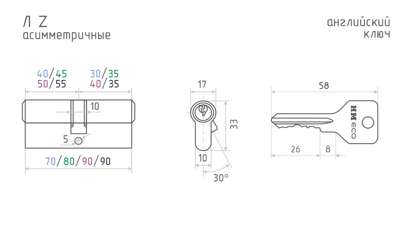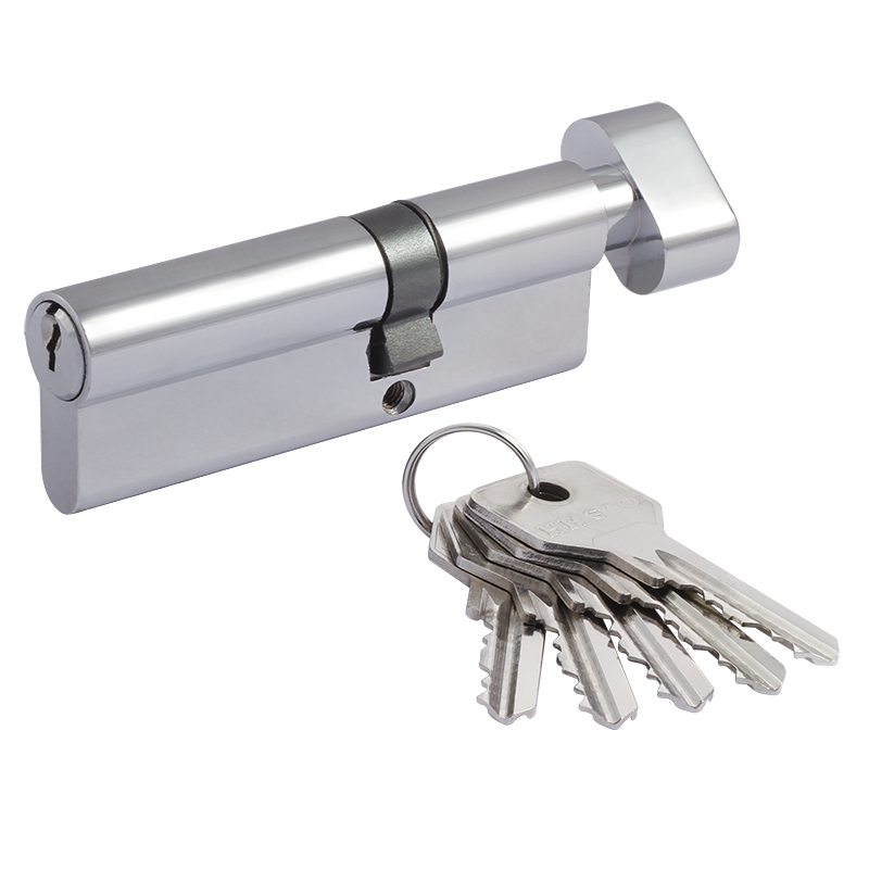 Цилиндр для межкомнатных и входных дверей. Материал ЦАМ (сплав цинка, алюминия и меди). В комплекте 5 стальных английских ключей. 5 пинов. Цилиндр имеет вертушку для удобного запирания изнутри помещения без использования ключа. Длину цилиндра подбирайте исходя из толщины двери, с небольшим запасом под накладку. Гарантия на работу цилиндра 1 год.