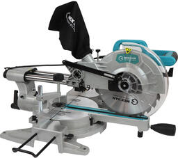 Торцовочная пила мощностью 2000 Вт. Диаметр диска: 255 мм. Максимальная глубина пропила под углом 90°: 72 мм. Максимальная глубина пропила под углом 45°: 40 мм. Max число оборотов диска 5000 об/мин. Возможность подключения пылесоса. Лазерный маркер. Вес 13 кг.