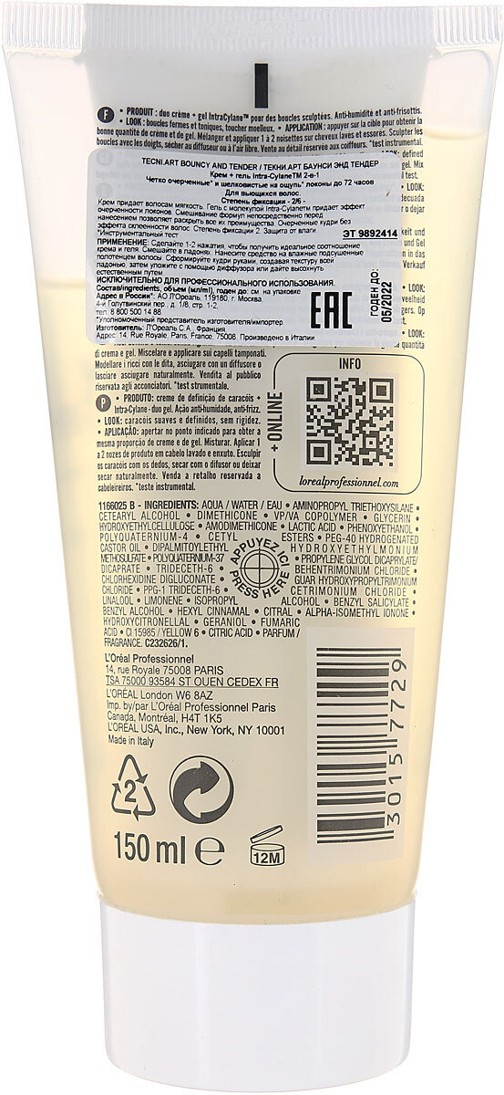 Крем для вьющихся волос L'Oreal Professionnel Tecni.Art Bouncy&Tender, 150 мл