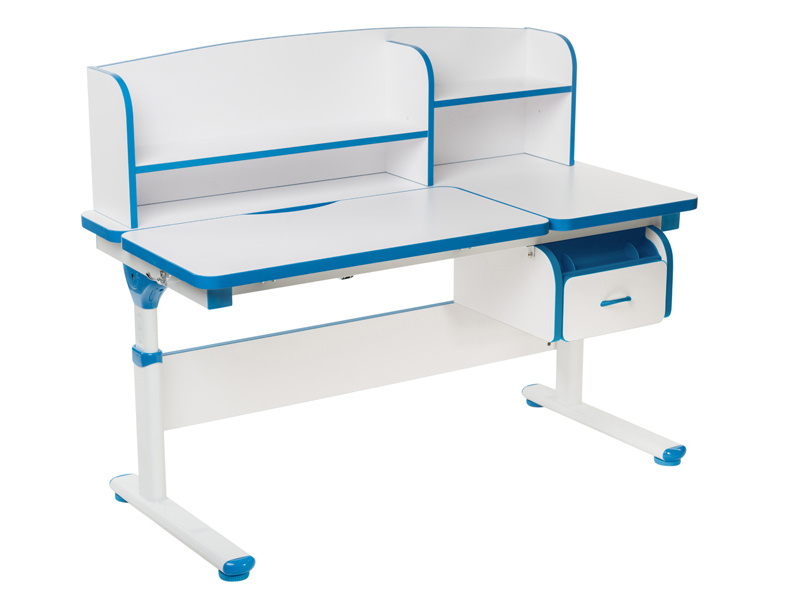 Регулируемая парта FunDesk Creare с выдвижным ящиком и надстройкой (цвет столешницы: голубой, цвет ножек стола: белый)