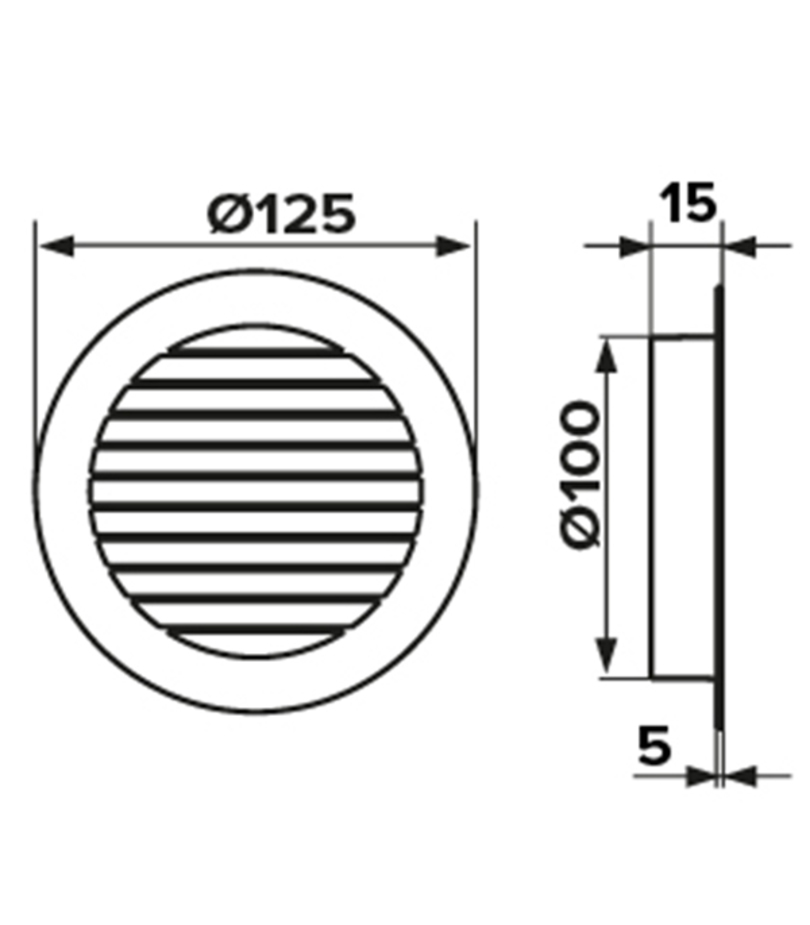 Решетка вентиляционная наружная ERA с фланцем d100 мм круглая алюминиевая d125 мм