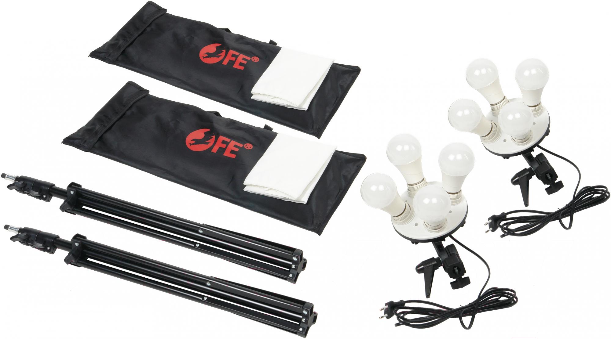• Дополнительная комплектация чехол (2 шт), документация, лампа (светодиодная, 8 шт), стойка (трехсекционная, 2 шт), панель ламповая (2 шт), тент софтбокса (2 шт), спицы металлические (8 шт), светорассеиватель (2 шт), предохранитель (1 шт)