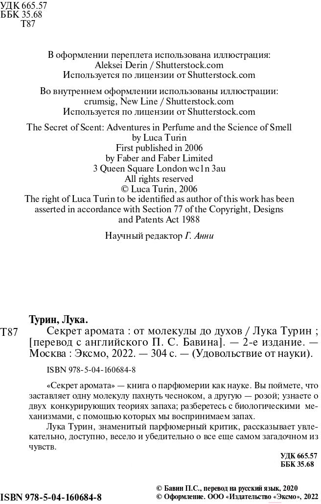 Книга Эксмо Секрет аромата: от молекулы до духов. 2-е издание (Турин Л.)