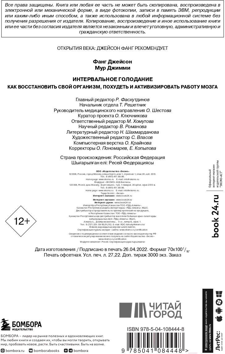 Книга Эксмо Интервальное голодание (Фанг Д., Мур Д.)