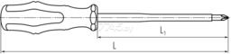 Отвертка крестовая PZ/FL2 100 мм диэлектрическая КВТ Профи (79779) предназначена для работ под напряжением до 1000В. Имеет намагниченные наконечники. Двухкомпонентная нескользящая рукоятка позволяет с комфортом производить работы. Рукоятка устройства с защитой от скатывания. Материал стержня (биты) - хром-ванадиевая сталь. Размерные характеристики L - 210 мм, L1 - 100 мм.