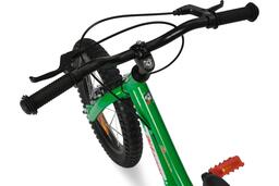 Байк имеет жесткую вилку, широкие покрышки P1130 16*2.125, чуткие ободные ручные тормоза, пластиковую защита цепи и звезды.