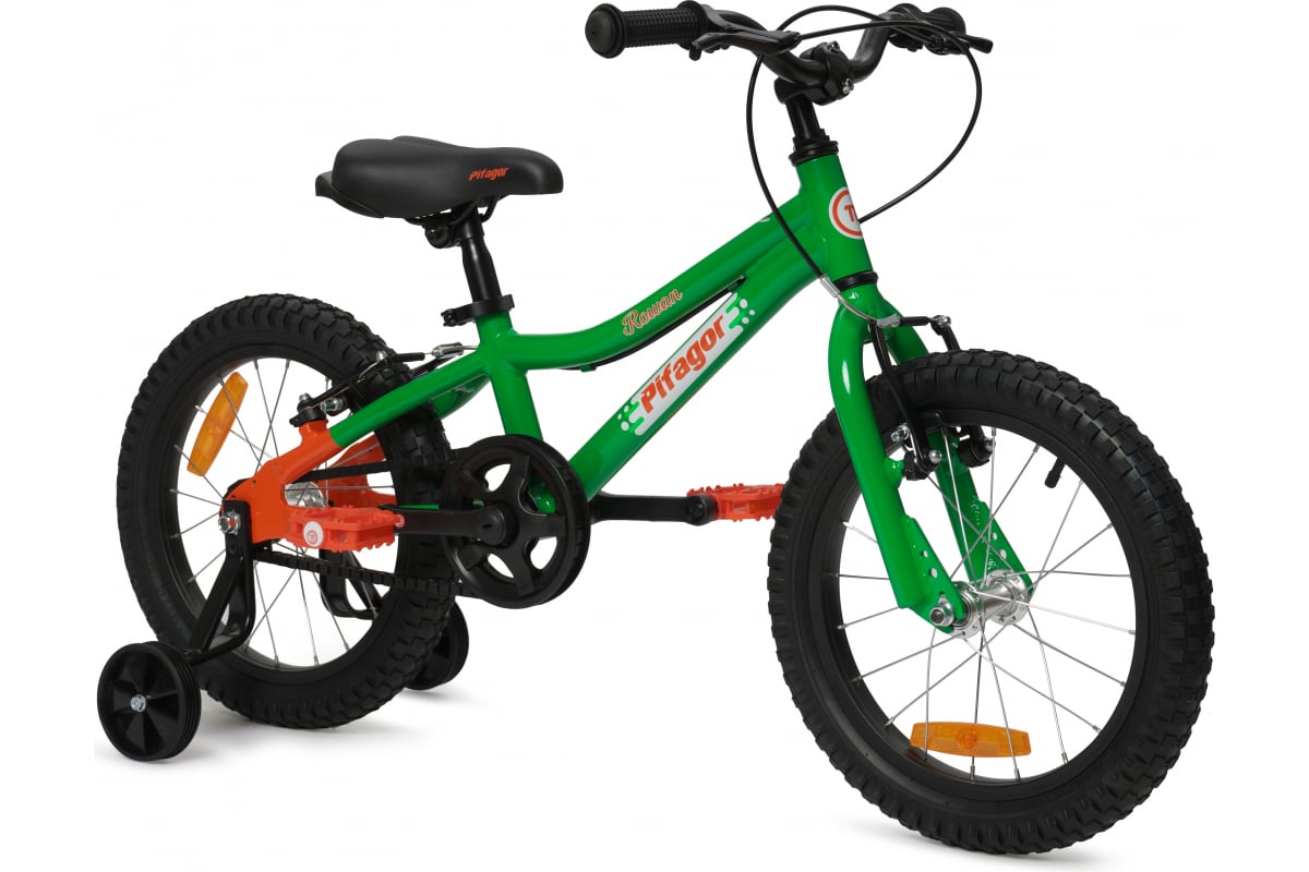 Велосипед PIFAGOR Rowan диаметр колес 16 PG16RNGO – удобный, безопасный и надежный, этот велосипед представлен в зелено-оранжевом цвете.