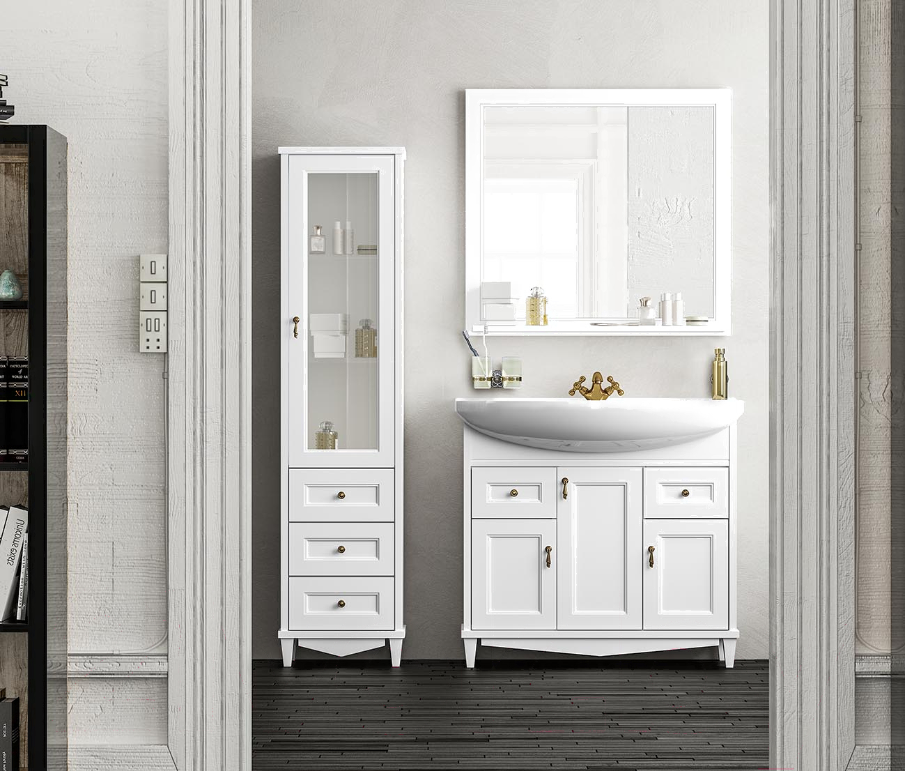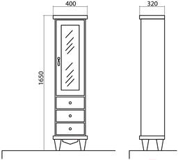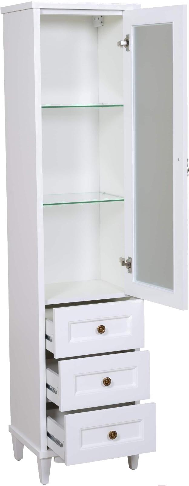 Шкаф-пенал для ванной Аква Родос Лиана R / АР0002340 (белый/патина золото)