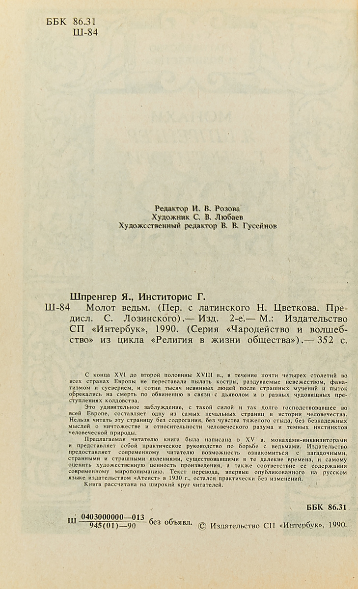 - Автор на обложке Я. Шпренгер, Г. Инститорис