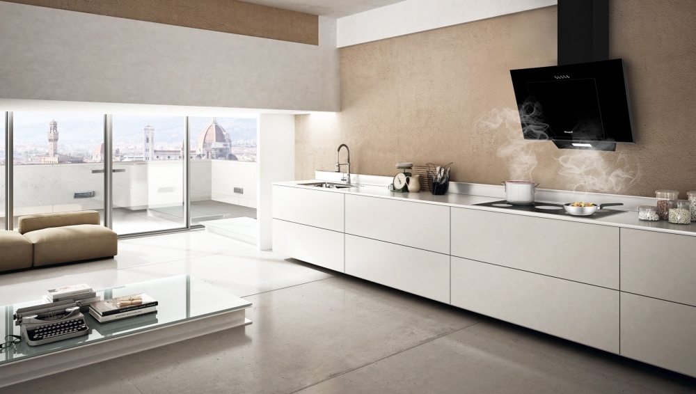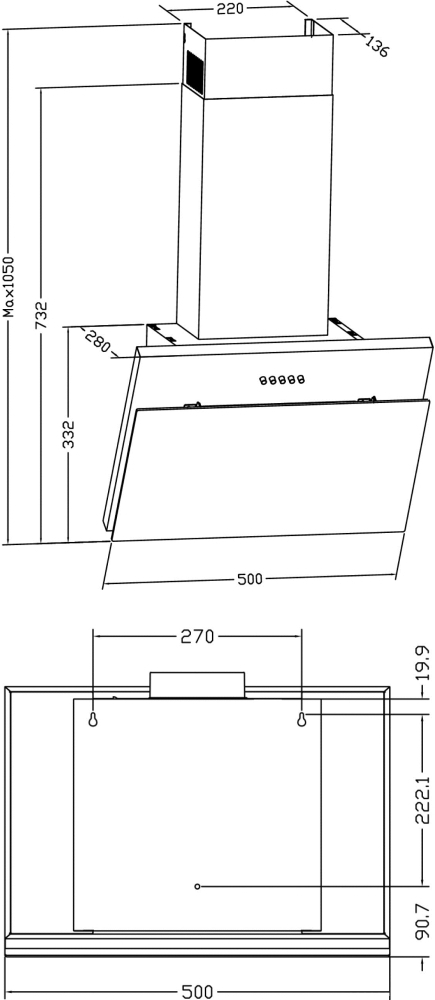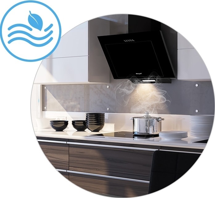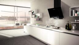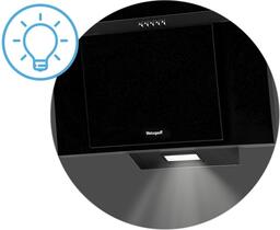 Настенная, наклонная кухонная вытяжка, ширина 50 см, тип очистки воздуха: отвод, количество скоростей 3, макс производительность 600 м3/ч, кнопочное управление, дополнительные функции: периметральное воздухопоглощение, металлический жироулавливающий фильтр, макс уровень шума 58 дБ.