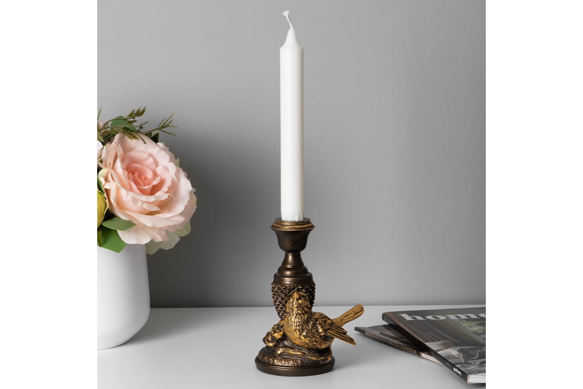 Подсвечник BOGACHO Птичка Терра правый 22697/бронзовый представляет собой эксклюзивный предмет интерьера. Элегантный подсвечник - это изысканный способ выразить благодарность близким друзьям или показать уважение к коллегам. Подсвечник изготовлен из литьевого коелгинского мрамора, затем изделие отшлифовано и патинировано вручную. Подсвечник подарит уют и тепло дому и станет завершающей деталью интерьера жилого пространства.