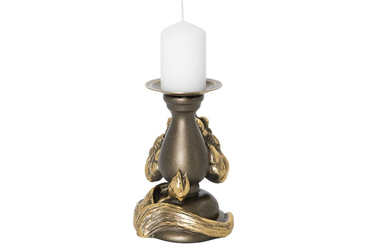 Подсвечник BOGACHO Ирис Бьюти 22673/бронзовый изготовлен из литьевого коелгинского мрамора, изделие отшлифовано и патинировано вручную. Имеет высокую степень детализации, что превращает обычный подсвечник в мини-статуэтку. Подойдет для декорирования, обладает низким центром тяжести и хорошей устойчивостью.