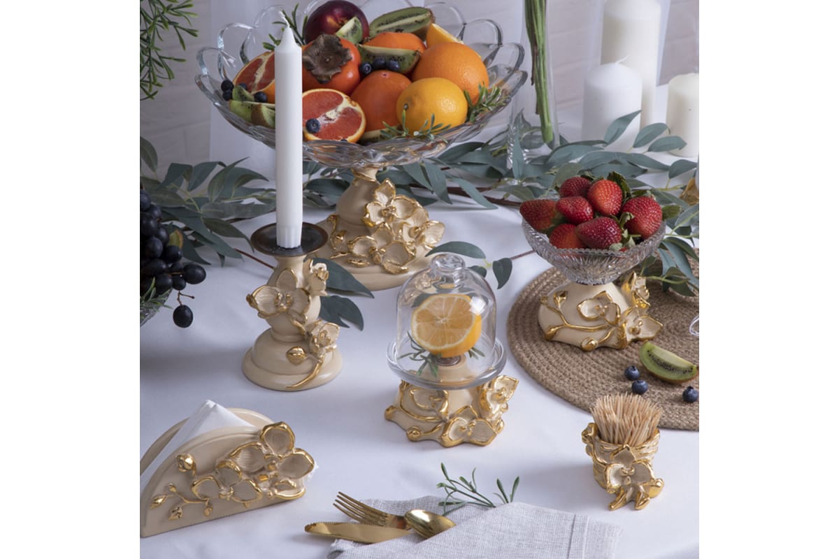 Подсвечник BOGACHO Цветок Орхидея Чарми 22666/кремовый