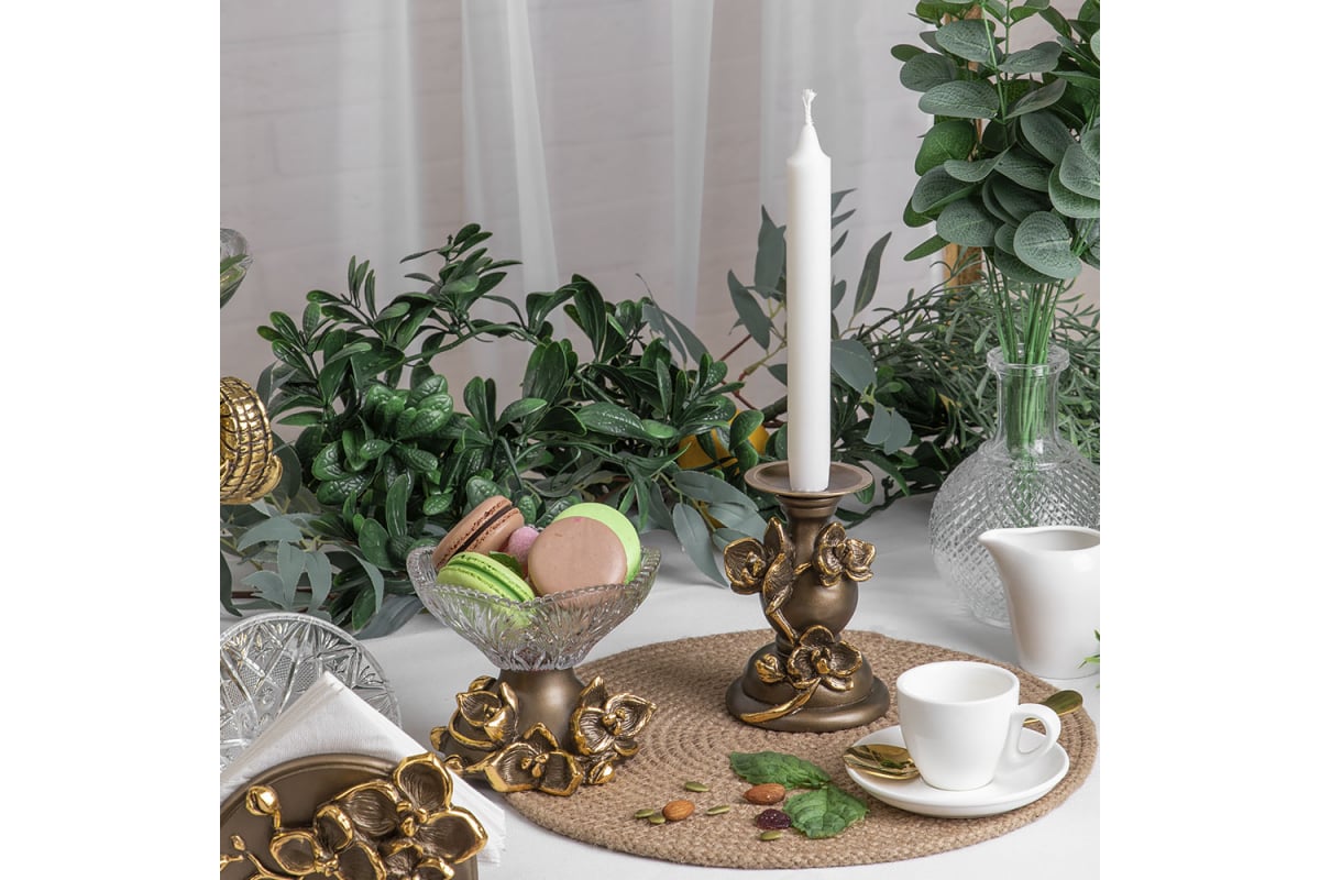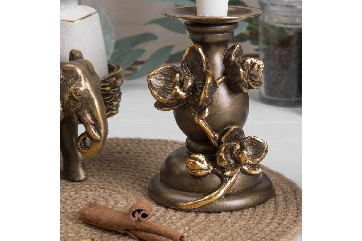 Подсвечник BOGACHO Цветок Орхидея Чарми 22666/бронзовый