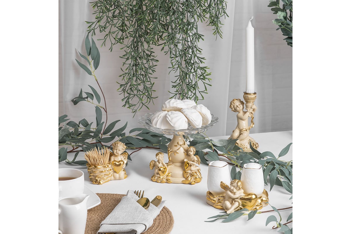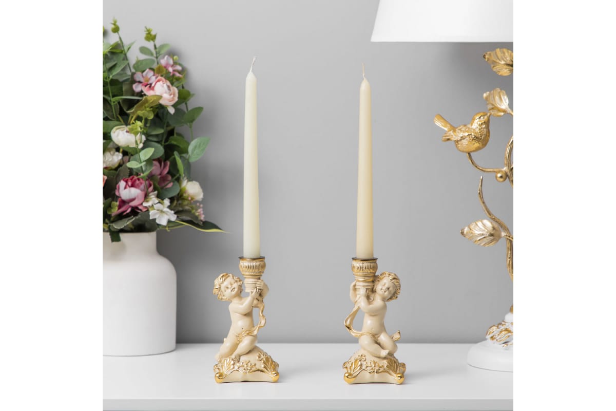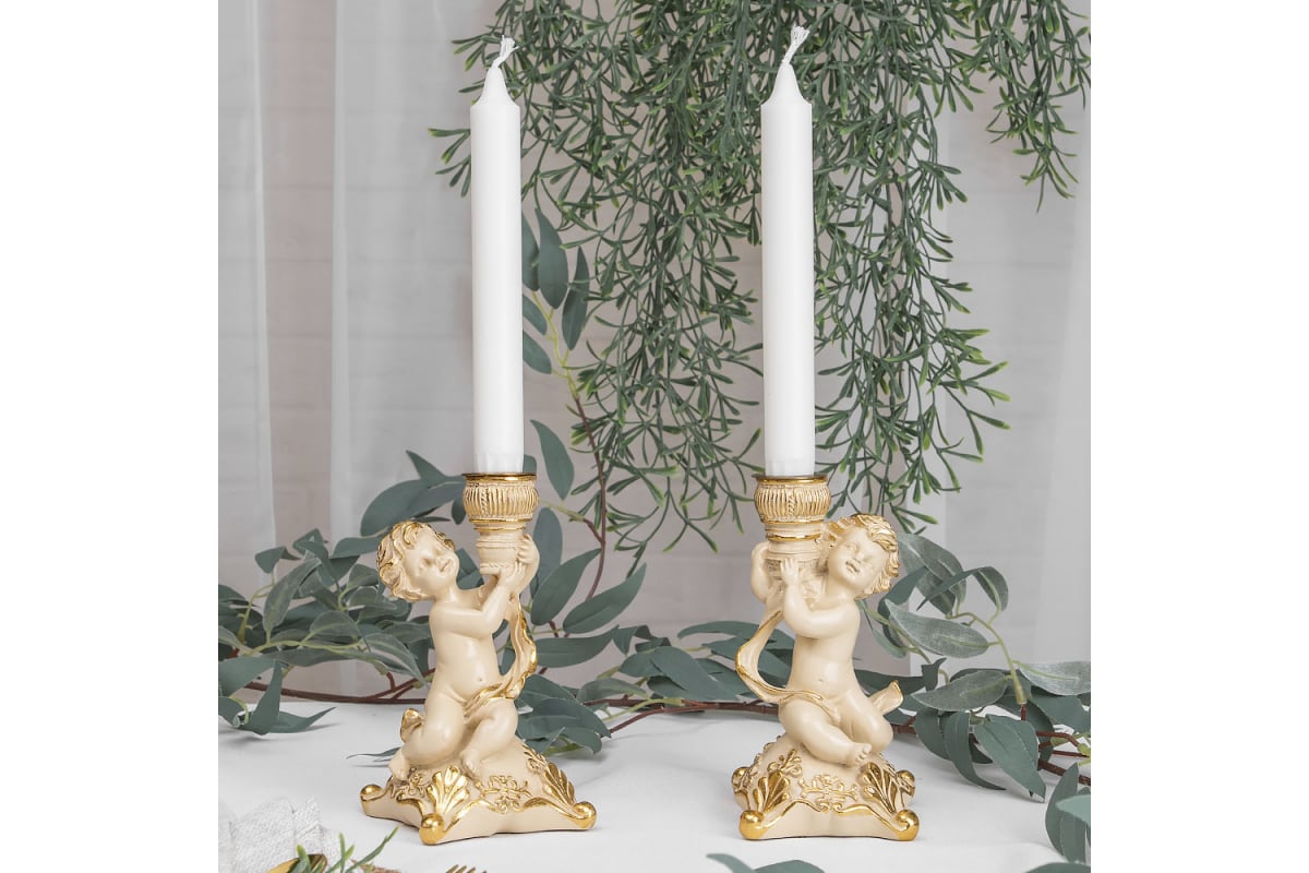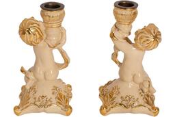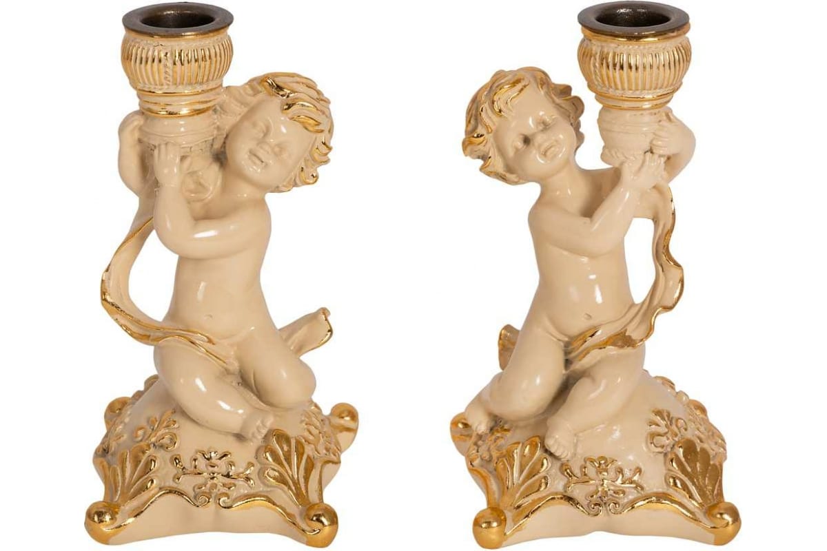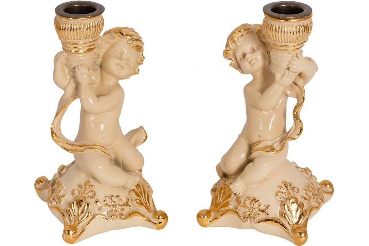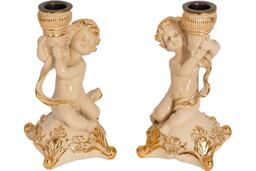 Набор из 2 подсвечников BOGACHO Ангелы Путти из мрамора, пара 22107/кремовый