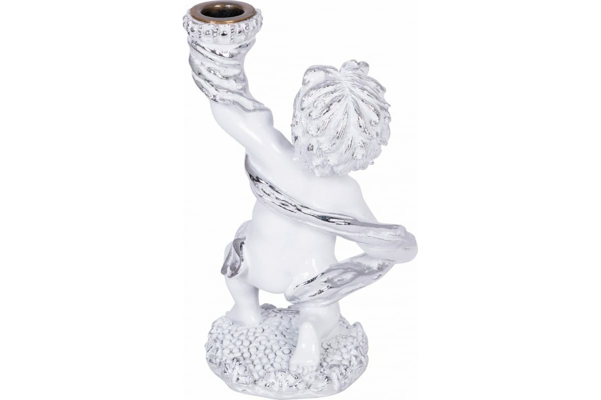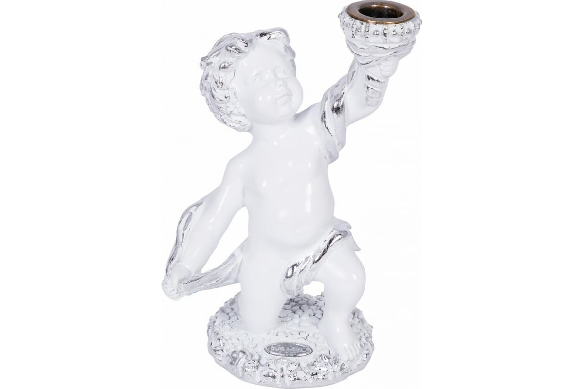 Подсвечник BOGACHO Ангел Амур правый, белого цвета с серебром 22712/БлСильвер
