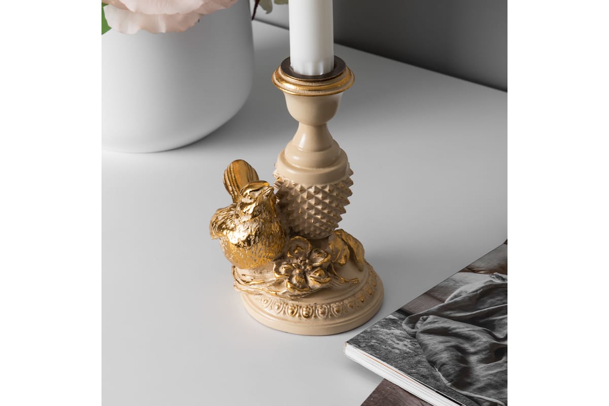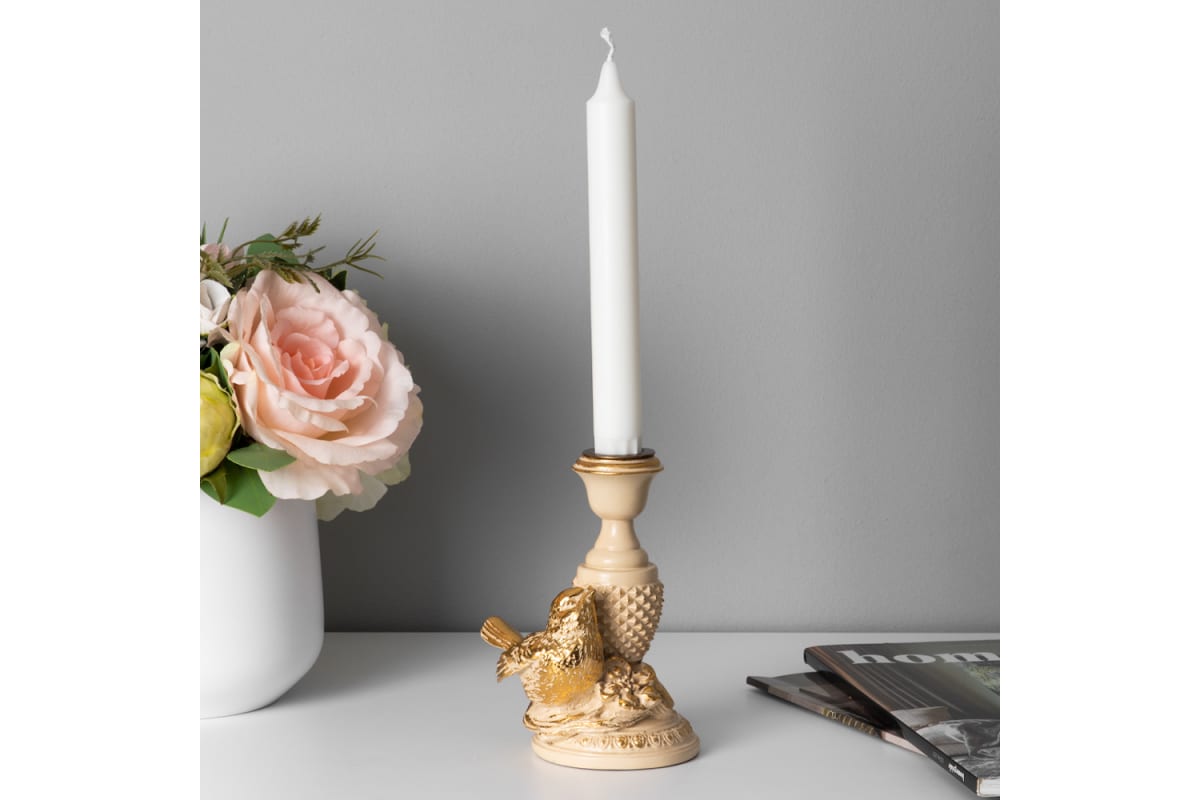 Подсвечник BOGACHO Птичка Терра левый 22696/кремовый изготовлен из литьевого коелгинского мрамора, изделие отшлифовано и патинировано вручную. Имеет высокую степень детализации, что превращает обычный подсвечник в мини-статуэтку. Подойдет для декорирования, обладает низким центром тяжести и хорошей устойчивостью.